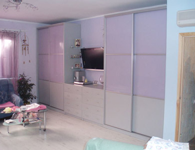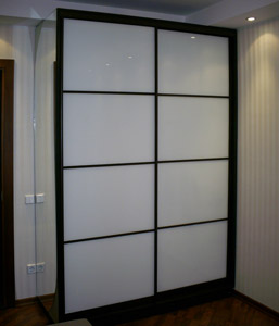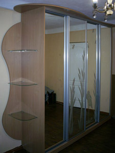 Что же касается шкафов-купе, то мы используем алюминиевые раздвижные системы известных производителей: ADS, ARISTO, DRAUN, KOMANDOR . Фасады для шкафов-купе выполняются в разных конфигурациях: с рисунком (матовом или цветном) на зеркале, комбинированные схемы бамбука, ротанга с цветным стеклом и т.д., а также есть возможность использовать зеркала с разными оттенками.